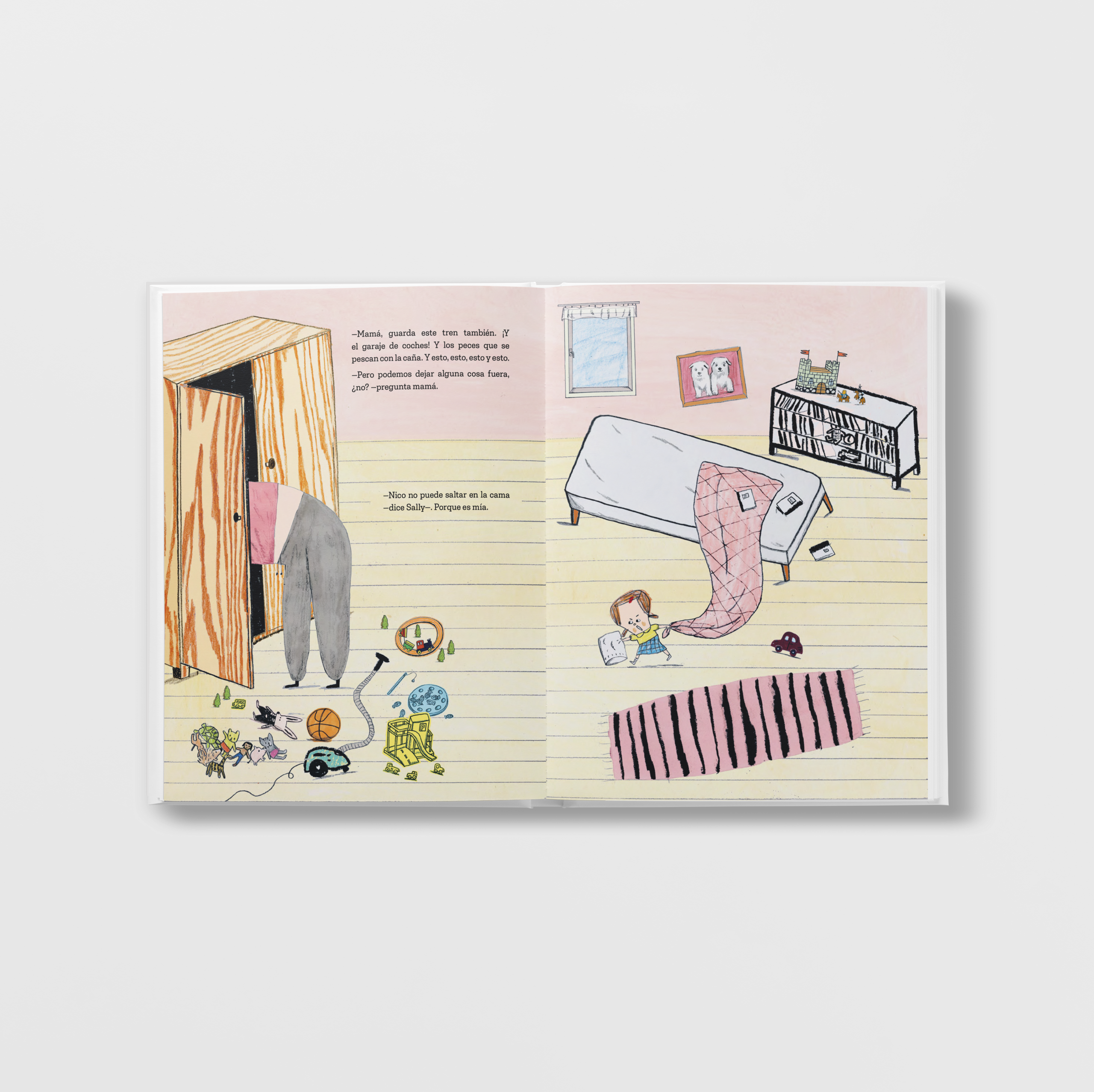 —Hoy Nico viene a casa a jugar —dice mamá. —No puede jugar con la ardilla —contesta Sally—. Porque es mía. Nico no puede jugar con el tren, ni con el garaje de coches, ni con la televisión ni tampoco con el inodoro. Porque, como dice Sally: «¡Todo eso es mío!». Un historia con mucho humor sobre compartir... o no.