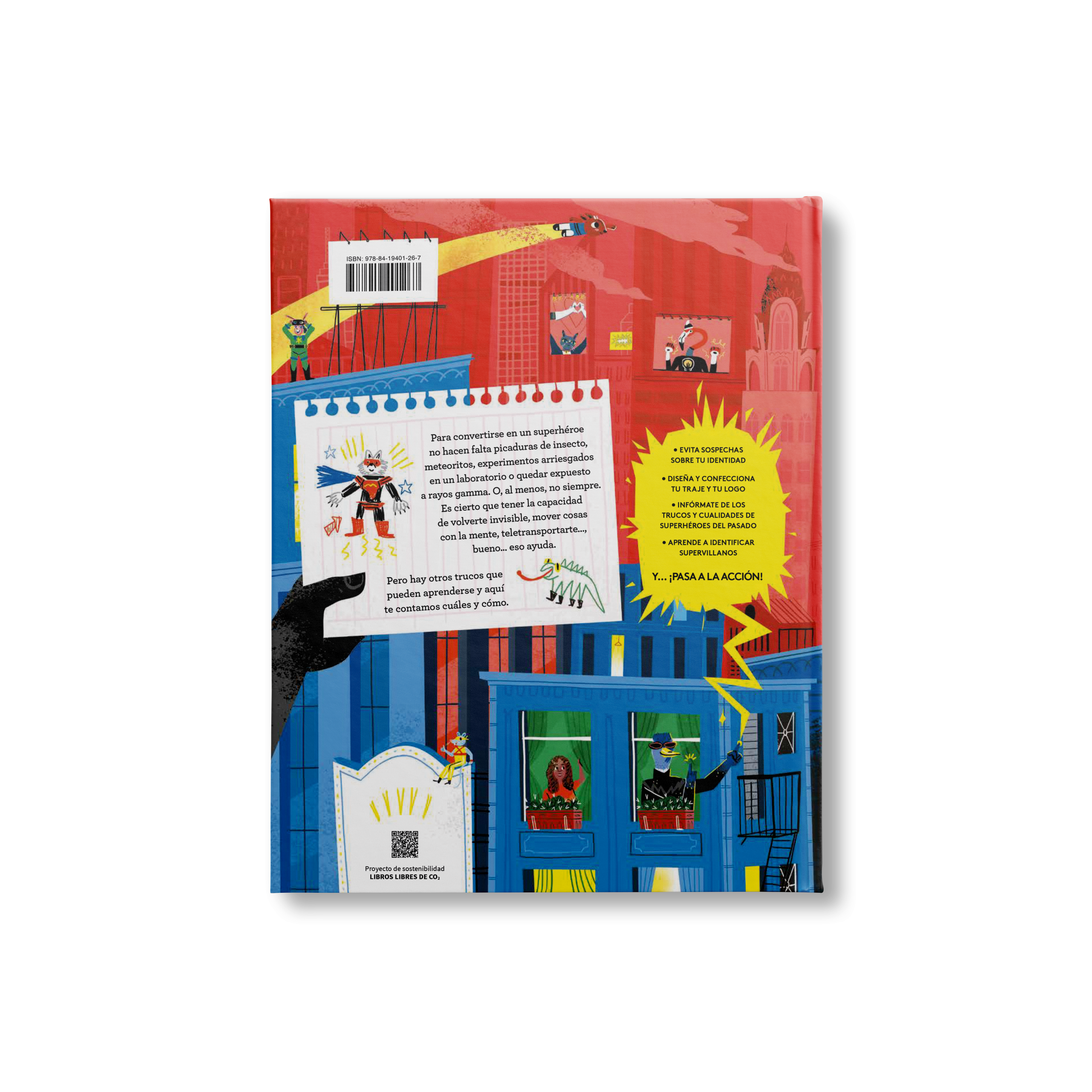 Para convertirse en un superhéroe no hacen falta picaduras de insecto, meteoritos, experimentos arriesgados en un laboratorio o quedar expuesto a rayos gamma. O, al menos, no siempre. Es cierto que tener la capacidad de volverte invisible, mover cosas con la mente, teletransportarte..., bueno... eso ayuda. Pero hay otros trucos que pueden aprenderse y aquí te contamos cuáles y cómo. • EVITA SOSPECHAS SOBRE TU IDENTIDAD • DISEÑA Y CONFECCIONA TU TRAJE Y TU LOGO • INFÓRMATE DE LOS TRUCOS Y CUALIDADES DE SUPERHÉROES DEL PASADO • APRENDE A IDENTIFICAR SUPERVILLANOS Y... ¡PASA A LA ACCIÓN!