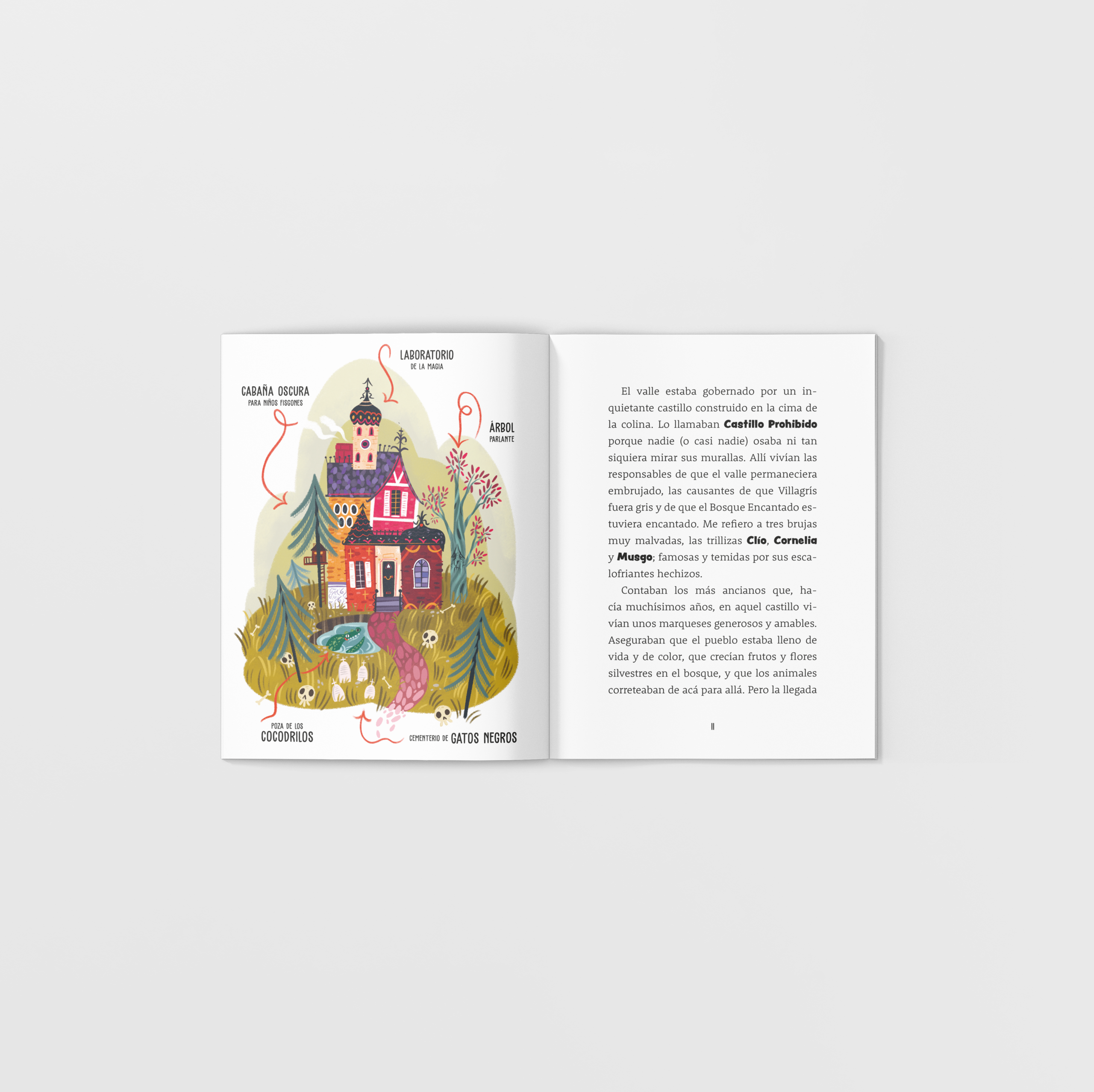 Esta historia sucedió en un valle. Pero no en uno cualquiera, sino en un valle embrujado. Lo gobernaban tres brujas muy malvadas, famosas y temidas por sus escalofriantes hechizos. Sí, sé que pone los pelos de punta, quizás hasta tus dientes han comenzado a repiquetear. Pero si tú, como yo, quisieras convertirte en una auténtica bruja, también habrías tocado el timbre del Castillo Prohibido…